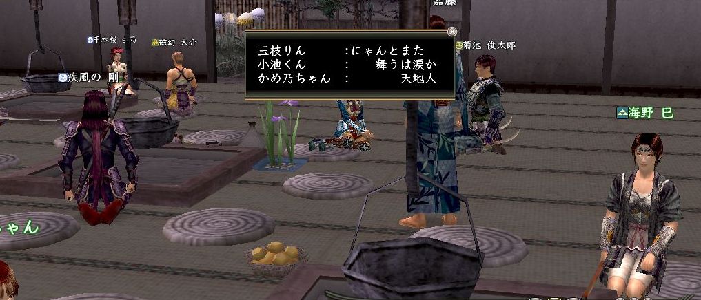 電波党員の皆様におかれましては、いかがお過ごしでしょうか。 日々、愉快なネタを提供くださる皆様には、私、感謝しておりますのよ。おほほほほ さて、今回期せずしてイベントを主催することとなった なんで「期せずして」なのかと言えば 主催するはずだった「つっきー」こと月城君から と、突然お星様になってしまったからであり 彼からの遺言にはこうあった 小池はこう考えた 「これはつっきーから党首への挑戦状である」と つまり彼は「主催できるものなら、やってみろ。ぴろぴろぴろ・・・」と言っているのだ ここでおめおめと延期になぞできるわけもなく かといって一人でやるのもかったるいので 「トビー」こと「鳶嘉藤」、「たま」こと「玉枝りん」、「千」こと「千本桜由乃」 を巻き込み スペシャルサンクスに「磁幻大介」を加えたプロジェクトチームは発足したのである まずは茶会に必要なことの確認である。 党員に聞いてみたところ、必要なのは ・屋敷 ・茶器 ・茶葉 ・3人以上の徒党 ・できれば茶菓子 であることがわかった。 しかし、屋敷があればいいというわけでなく 全員が集まるためには 市にて店舗になっている必要があるだろうが 小池が売り子の入札で当選していたので 利用することにした 極小屋敷飾り無しではあまりにも無愛想なので 100貫かけて畳を敷き 30貫かけて座布団を敷き 帰参者キャンペーンを利用して庭を整備し 人に家具を作らせ おもてなしの心を形としていった 次は茶器 茶器が作れる小池は20個の茶碗を用意し売り子にセット 茶葉も念のため売り子にセット あとで気づいたのだが茶器は茶屋のあたりにいる茶道師範に鑑定してもらわないと茶会の道具として使えない ので後ほど差し替えた そして、新たに加入した人たちも含めて改めて茶会の日程を知らせた 信書は一度に100人まで送れるようにしてほしいと思う 最後に、これがもっとも重要だったのだが 茶会の予行演習 だいたいが私は茶会のやりかたを知らなかったのだ。 トビーに教えてもらう予定だったが、彼もリアルが忙しく なかなか入ってこない そこで有志を募ったところ応じてくれたのが磁幻君 さっそく電波闘争本部・・?どんな本部!? 電波党総本部へ移動して教えを請う やり方とかなんとかいう以前に、いきなり茶を飲まされる不具合発生 まぁ、そんなこんなで茶会のやり方をマスターしたらしい党首は イベントに思いを馳せる 「で、これをどうやってイベントにするん?」 お茶会前夜は暮れていった。 続くかもね |