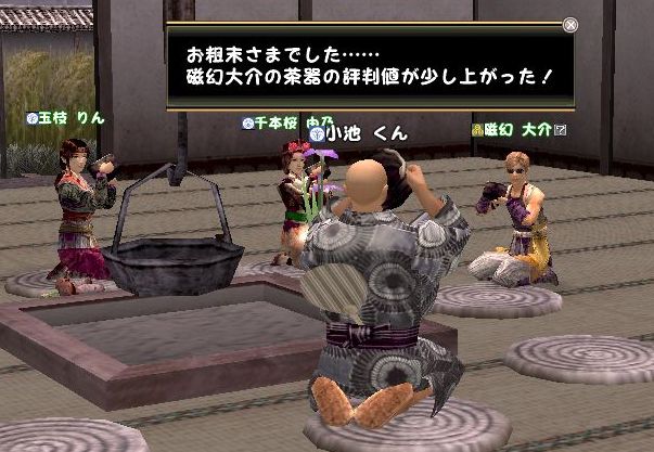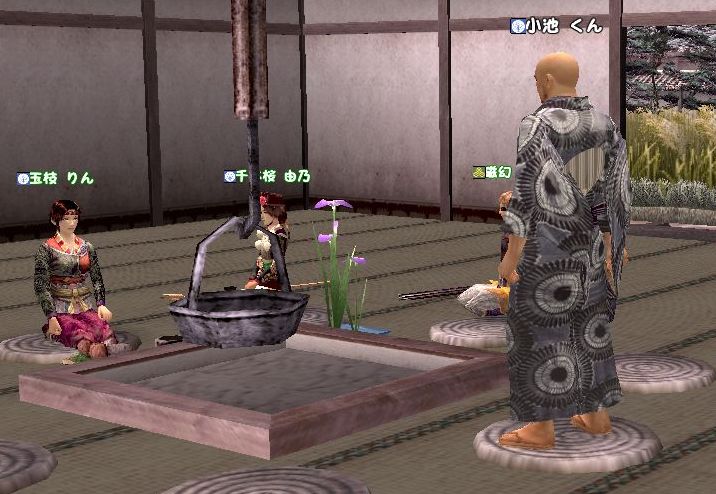 電波党員の皆様におかれましては、いかがお過ごしでしょうか。 日々、愉快なネタを提供くださる皆様には、私、感謝しておりますのよ。おほほほほ さて、今回期せずしてイベントを主催することとなった なんで「期せずして」なのかと言えば 主催するはずだった「つっきー」こと月城君から と、突然お星様になってしまったからであり 彼からの遺言にはこうあった 小池はこう考えた 「これはつっきーから党首への挑戦状である」と つまり彼は「主催できるものなら、やってみろ。ぴろぴろぴろ・・・」と言っているのだ ここでおめおめと延期になぞできるわけもなく かといって一人でやるのもかったるいので 「トビー」こと「鳶嘉藤」、「たま」こと「玉枝りん」、「千」こと「千本桜由乃」 を巻き込み スペシャルサンクスに「磁幻大介」を加えたプロジェクトチームは発足したのである まずは茶会に必要なことの確認である。 党員に聞いてみたところ、必要なのは ・屋敷 ・茶器 ・茶葉 ・3人以上の徒党 ・できれば茶菓子 であることがわかった。 しかし、屋敷があればいいというわけでなく 全員が集まるためには 市にて店舗になっている必要があるだろうが 小池が売り子の入札で当選していたので 利用することにした 極小屋敷飾り無しではあまりにも無愛想なので 100貫かけて畳を敷き 30貫かけて座布団を敷き 帰参者キャンペーンを利用して庭を整備し 人に家具を作らせ おもてなしの心を形としていった 次は茶器 茶器が作れる小池は20個の茶碗を用意し売り子にセット 茶葉も念のため売り子にセット あとで気づいたのだが茶器は茶屋のあたりにいる茶道師範に鑑定してもらわないと茶会の道具として使えない ので後ほど差し替えた そして、新たに加入した人たちも含めて改めて茶会の日程を知らせた 信書は一度に100人まで送れるようにしてほしいと思う 最後に、これがもっとも重要だったのだが 茶会の予行演習 だいたいが私は茶会のやりかたを知らなかったのだ。 トビーに教えてもらう予定だったが、彼もリアルが忙しく なかなか入ってこない そこで有志を募ったところ応じてくれたのが磁幻君 さっそく電波闘争本部・・?どんな本部!? 電波党総本部へ移動して教えを請う やり方とかなんとかいう以前に、いきなり茶を飲まされる不具合発生 まぁ、そんなこんなで茶会のやり方をマスターしたらしい党首は イベントに思いを馳せる 「で、これをどうやってイベントにするん?」 お茶会前夜は暮れていった。 続くかもね |